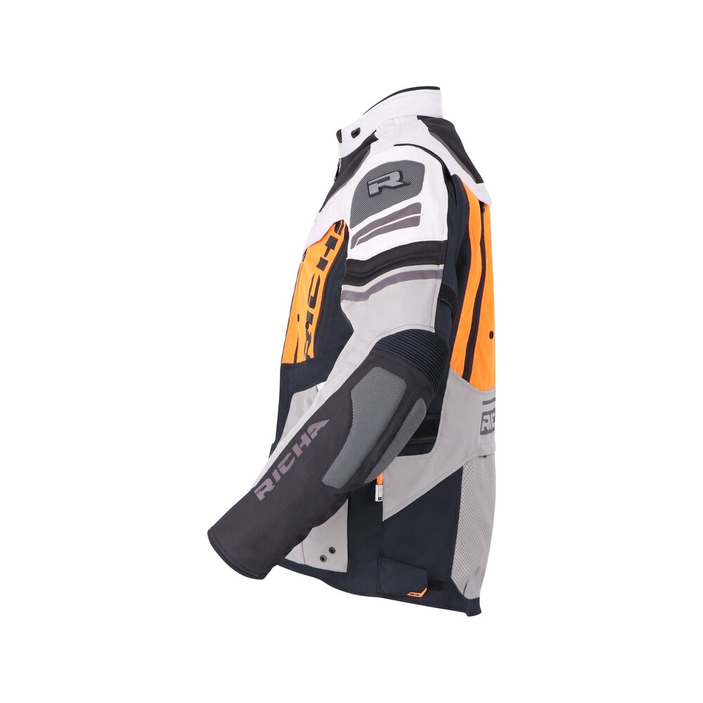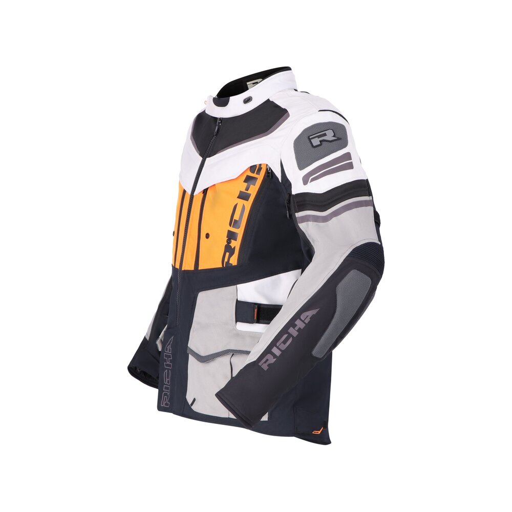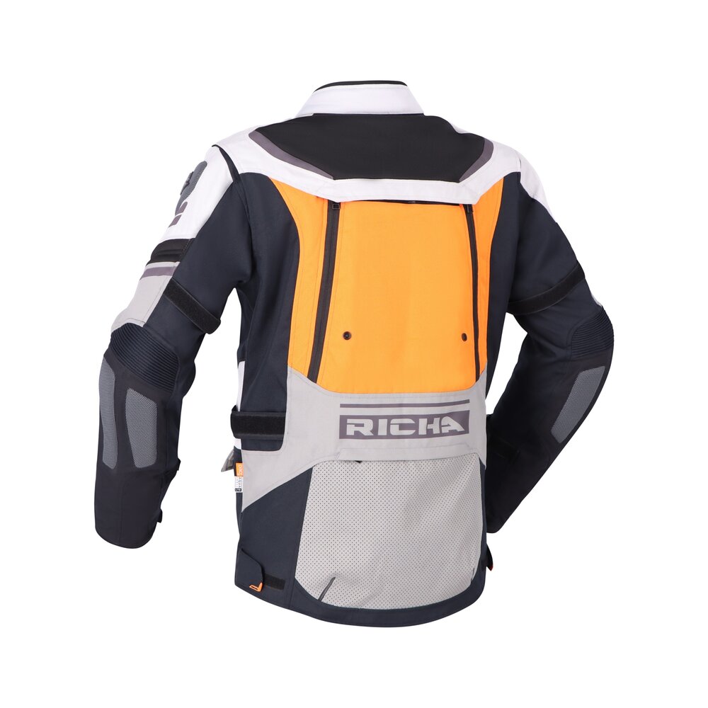 La Infinity 2 Adventure se adapta perfectamente a las condiciones climáticas, para que puedas llevarla durante todo el año. Como ya nos tiene acostumbrados Richa, esta chaqueta de aventura para motorista está equipada con protección D3O y la protección de espalda está incluida. Una larga cremallera de conexión permite unir los pantalones y la chaqueta para que puedas formar uno solo. El acabado de neopreno en el cuello y los puños proporciona mayor comodidad. Para que a los aventureros no les falte espacio de almacenamiento, se ha incluido cinco bolsas adicionales y dos bolsillos interiores en la chaqueta Infinity 2 Adventure.