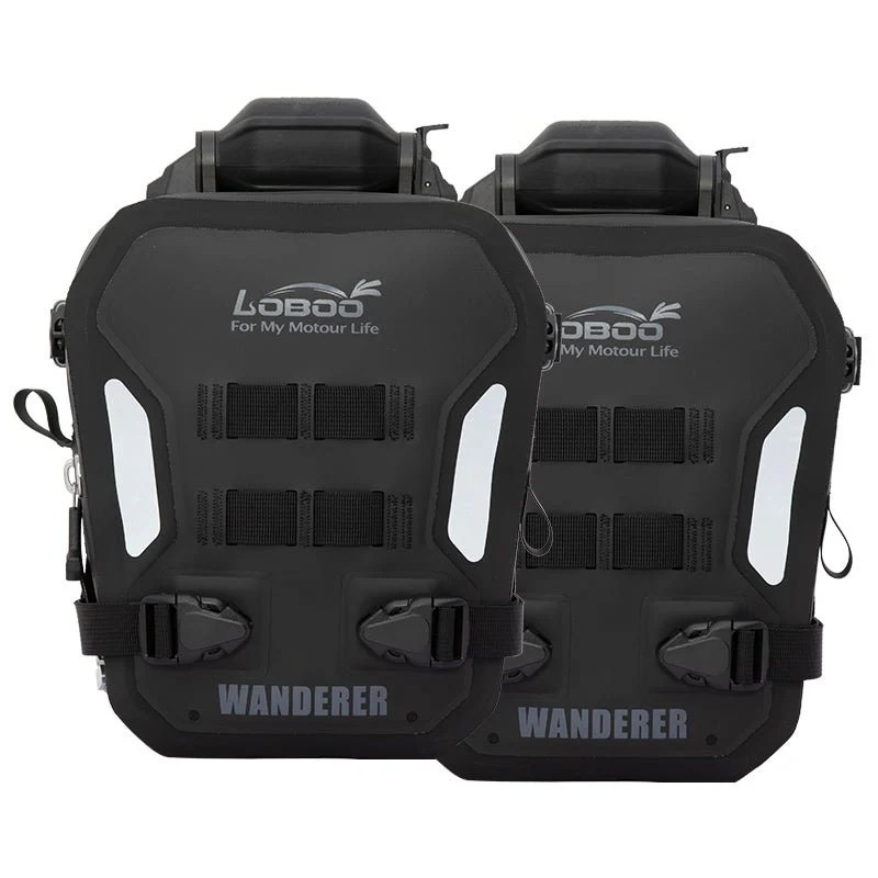 Con bandas reflectantes de advertencia integradas, estas bolsas aumentan la visibilidad nocturna, lo que aumenta la seguridad al alertar a los vehículos y peatones cercanos. El sistema antirrobo, con hebillas Duraflex y compatibilidad con cerraduras unificadas para maletas LOBOO, añade una capa adicional de seguridad para sus pertenencias. - Instalación y compatibilidad fáciles de usar.