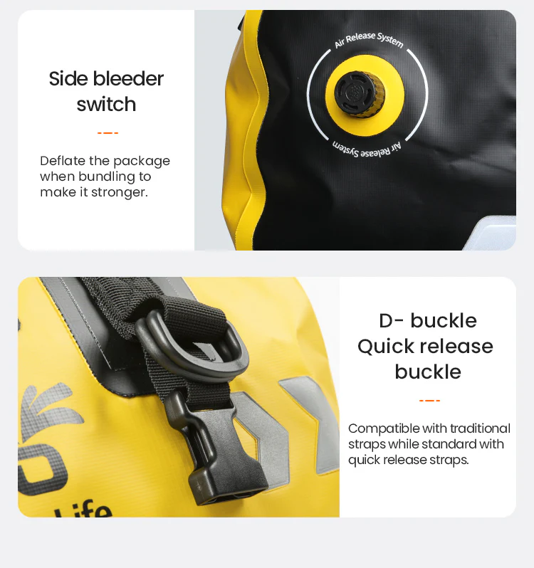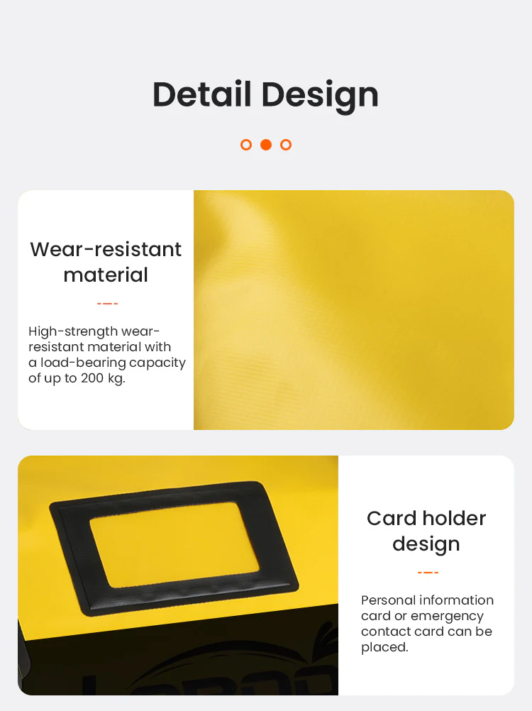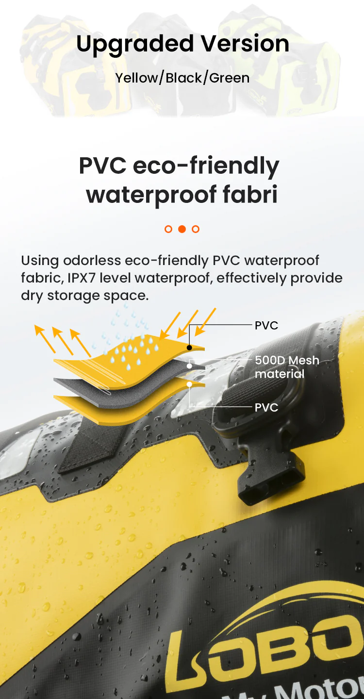 Tejido impermeable de PVC ecológico: inodoro, con certificación IPX7 de impermeabilidad, ofrece espacio de almacenamiento seco. Incluye una bolsa interior para separar la ropa mojada de la seca, lo que facilita la separación. Mantiene todo seco y protege eficazmente los artículos de la humedad bajo la lluvia torrencial.