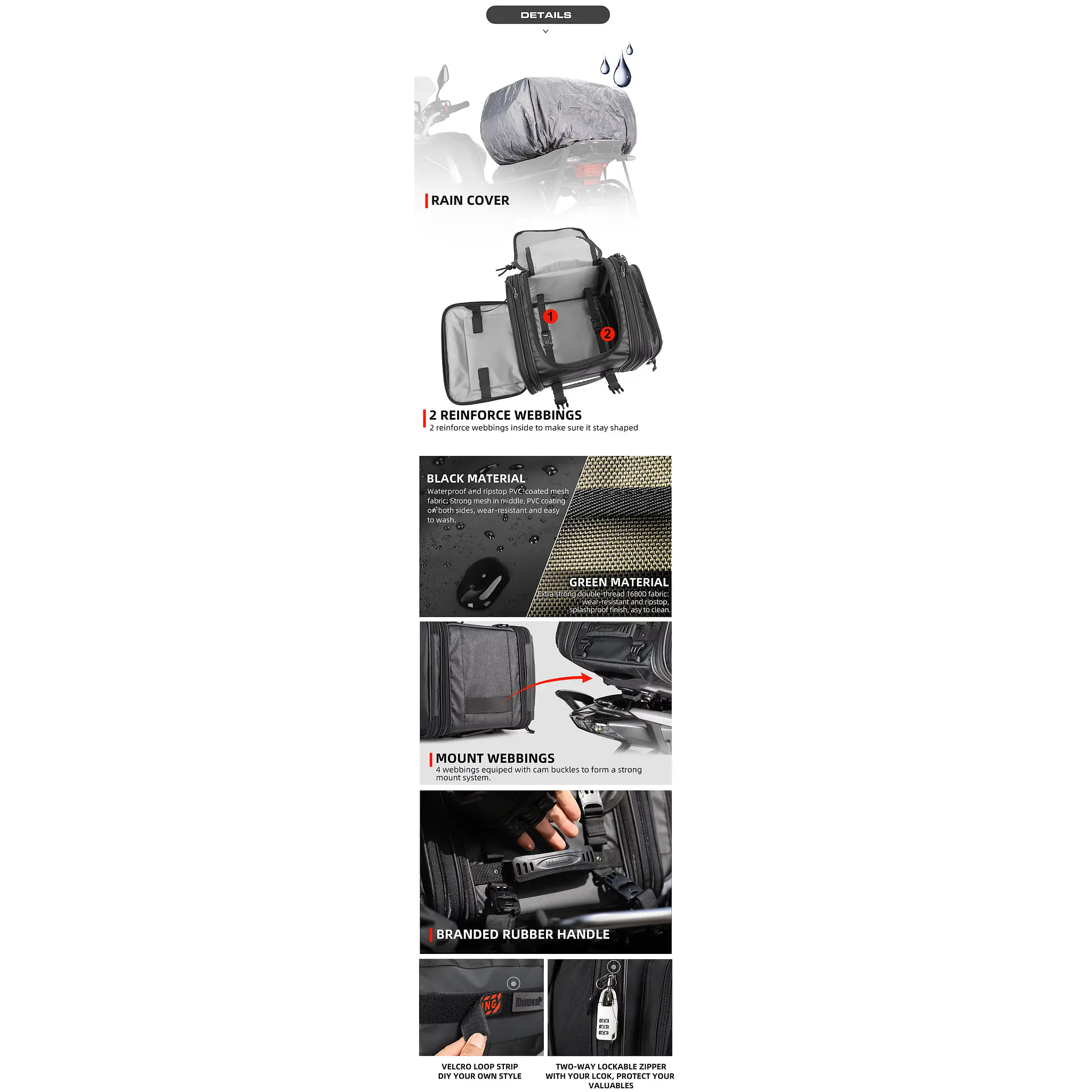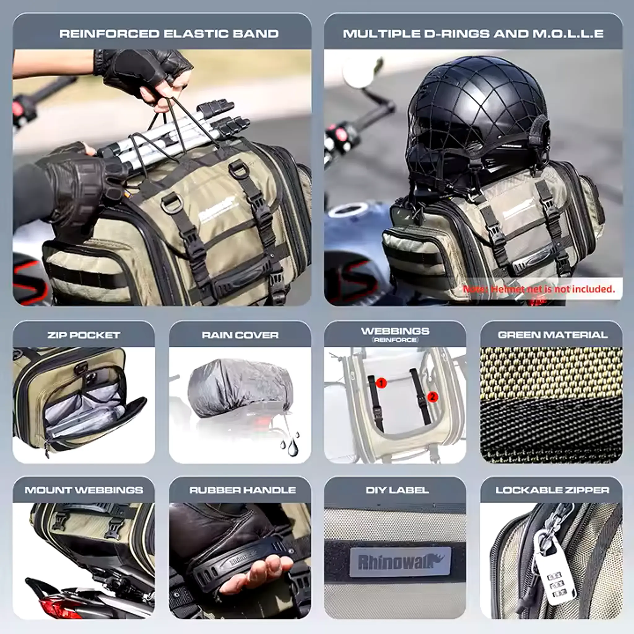 • Compatible con la mayoría de motocicletas y fácil de montar en el asiento trasero, baúl o maletero.