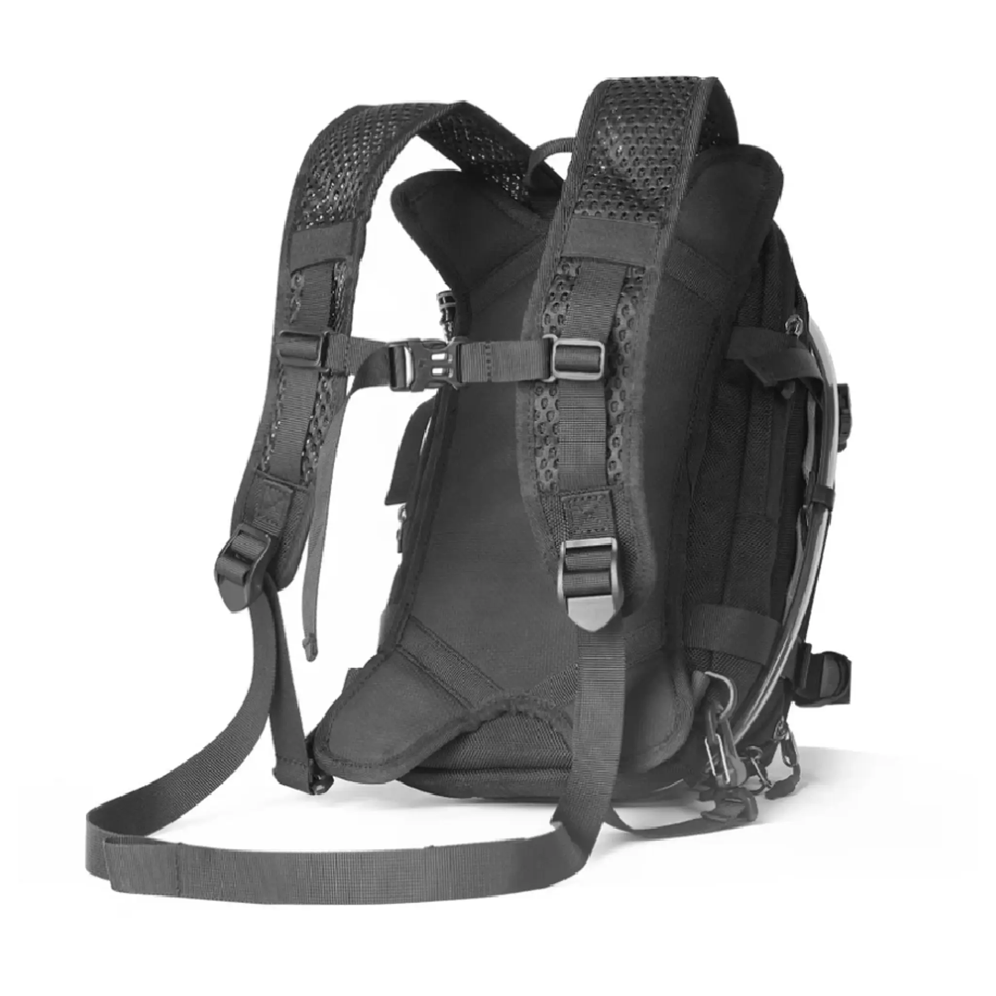 Dimensiones: 21 x 10,5 x 32/48 cm – Se adapta a la barra de protección o cola de la motocicleta, manteniendo un perfil bajo y aerodinámico.