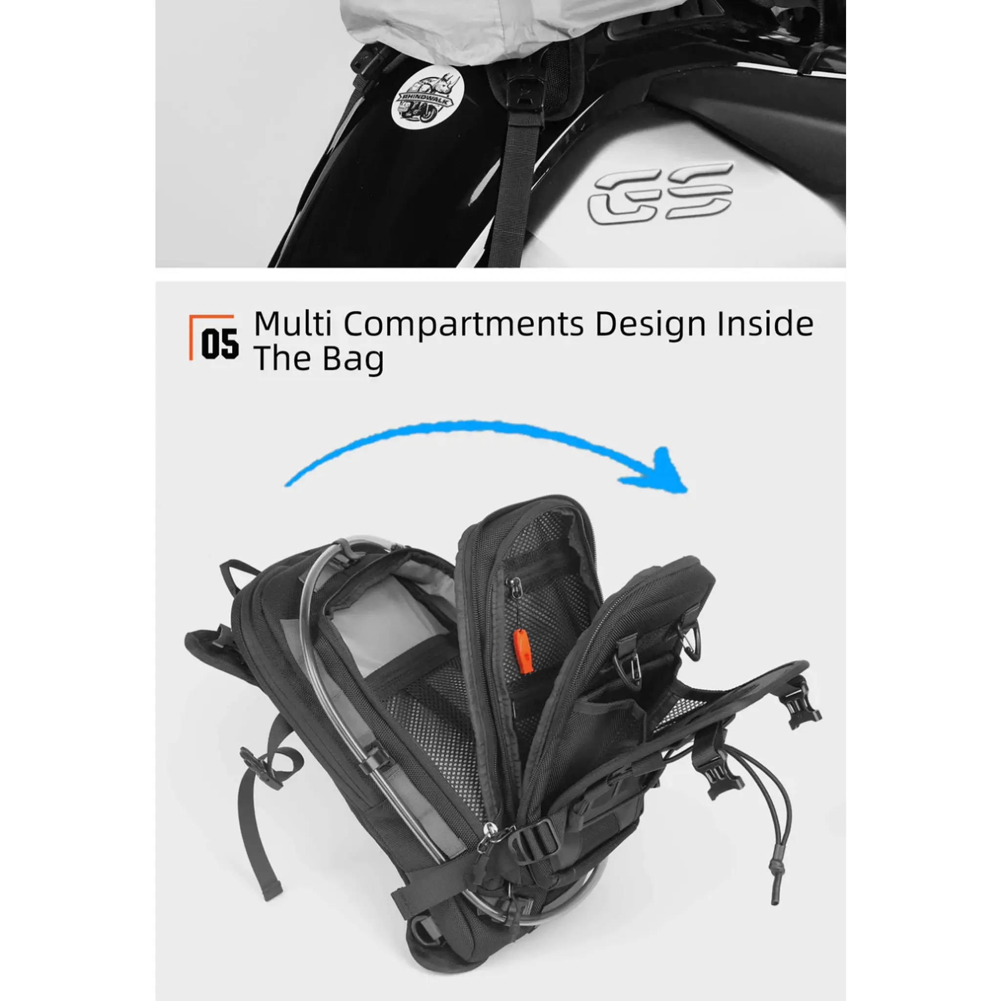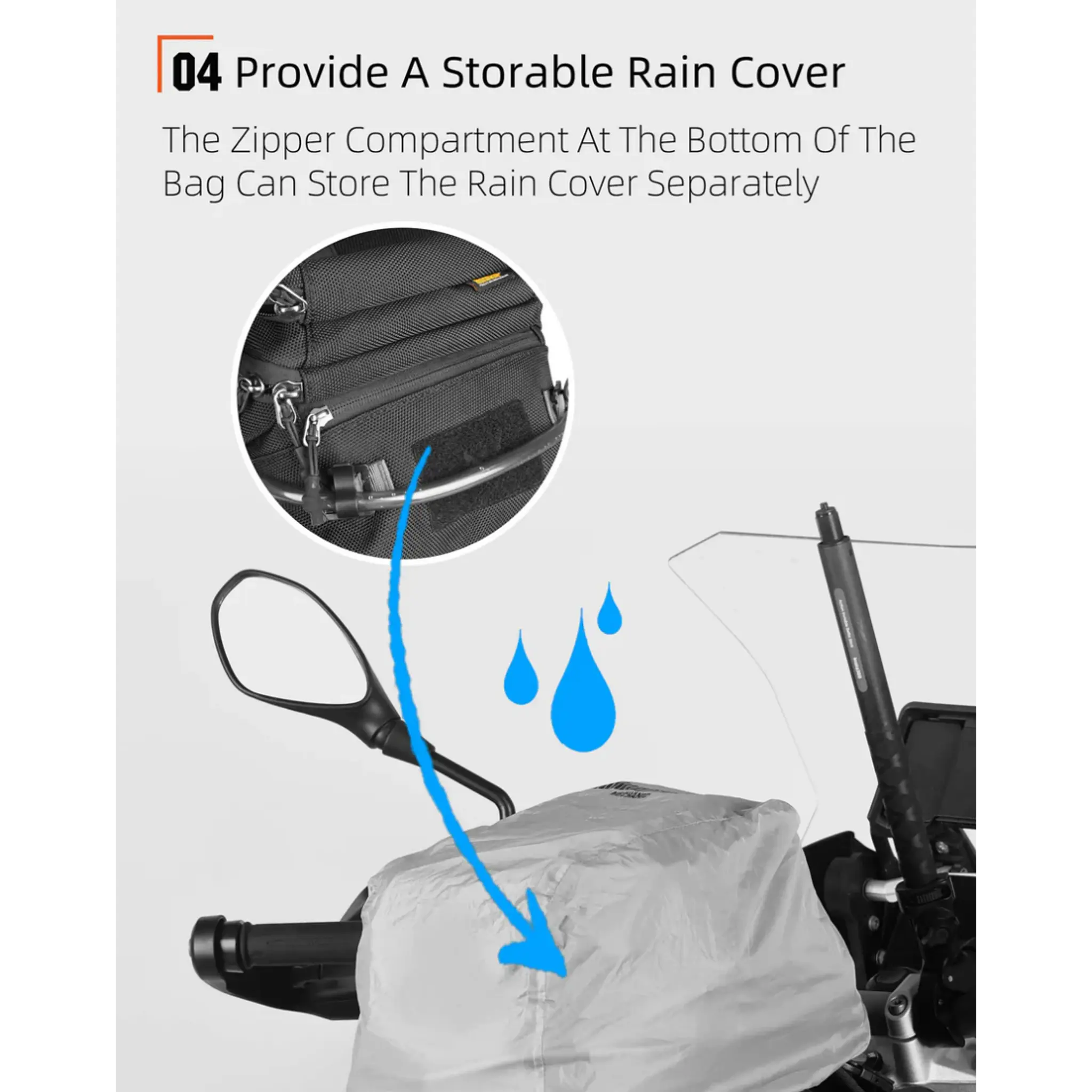 El Bolso de Motocicleta Rhinowalk de estanque es la solución ideal para motociclistas aventureros que necesitan espacio adicional sin sacrificar comodidad ni protección. Su diseño impermeable y su sistema MOLLE garantizan que tus pertenencias estarán seguras y accesibles, sin importar las condiciones climáticas o el terreno.