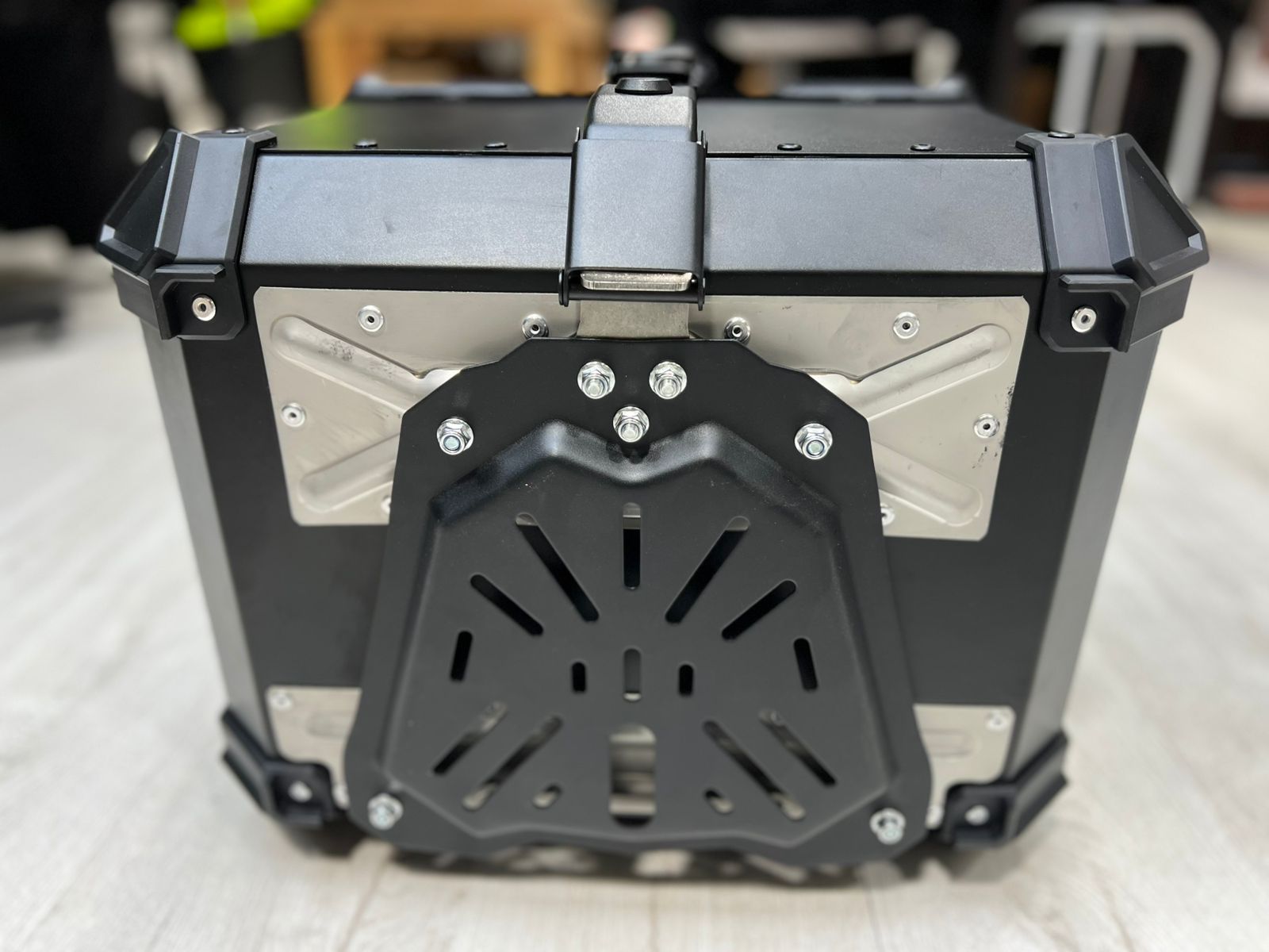 Topcase negro de «tipo aluminio» (es plástico).