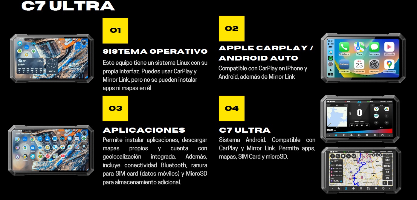 - Interfaz intuitiva para motociclistas: maneja sin distracciones.