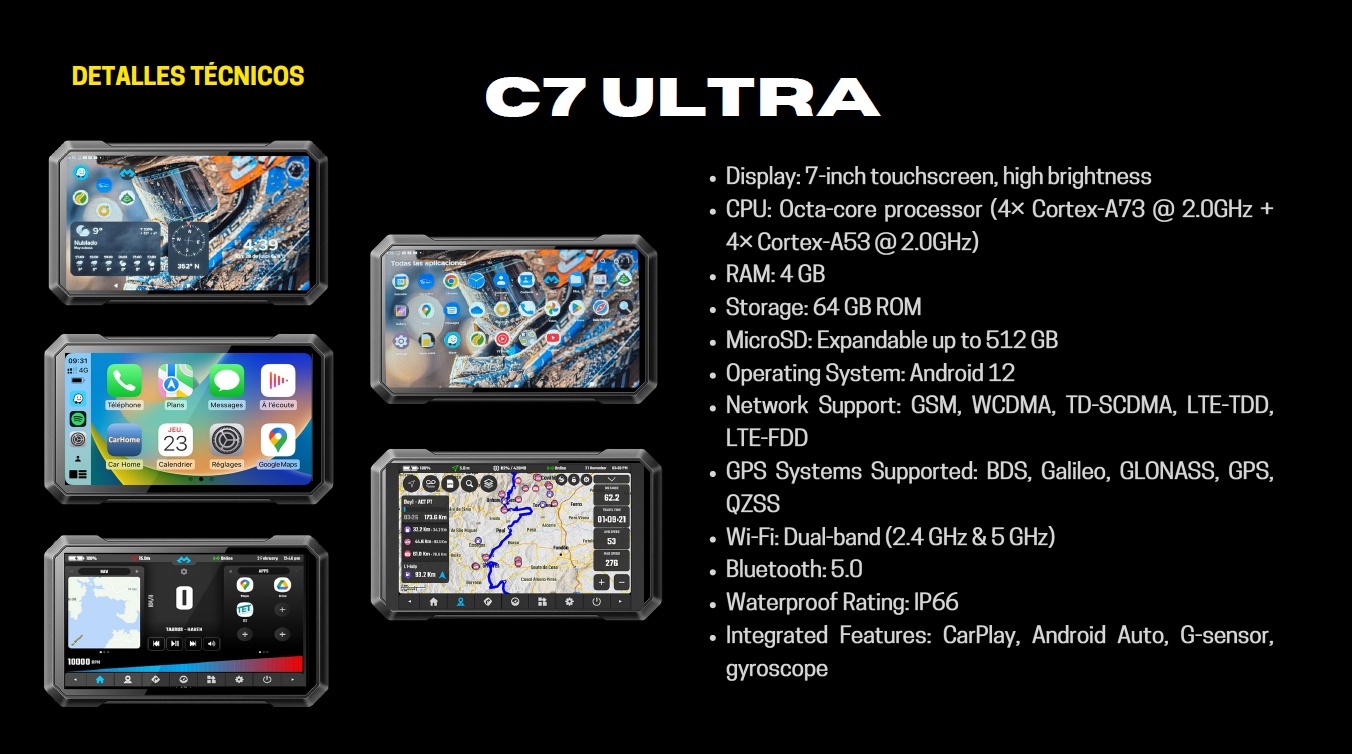 Ya sea que recorras caminos rurales, senderos de tierra o simplemente quieras salir de la rutina, el Ricoel C7 Ultra te acompaña con lo mejor de la tecnología outdoor. Una pantalla brillante, señal GPS ultraconfiable y resistencia a prueba de climas extremos, todo pensado para quienes viven sobre dos ruedas… y no le temen a lo desconocido.