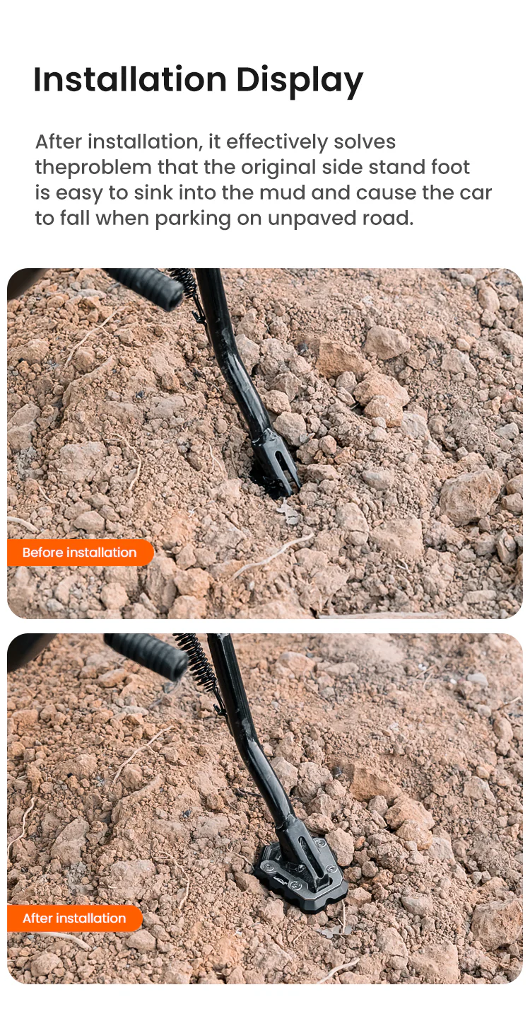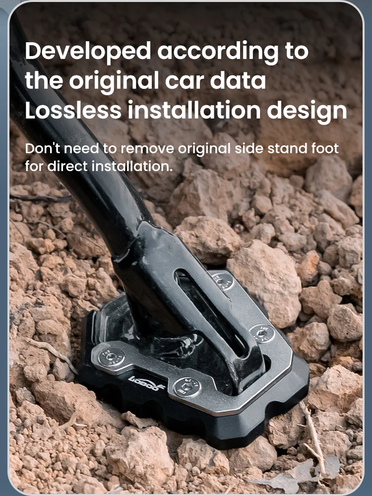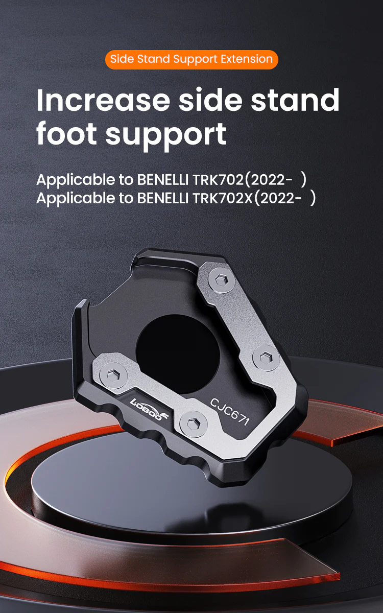 Marca: Loboo Producto: Extensión pata de apoyo lateral Material: Aleación de aluminio de alta resistencia , proceso CNC.